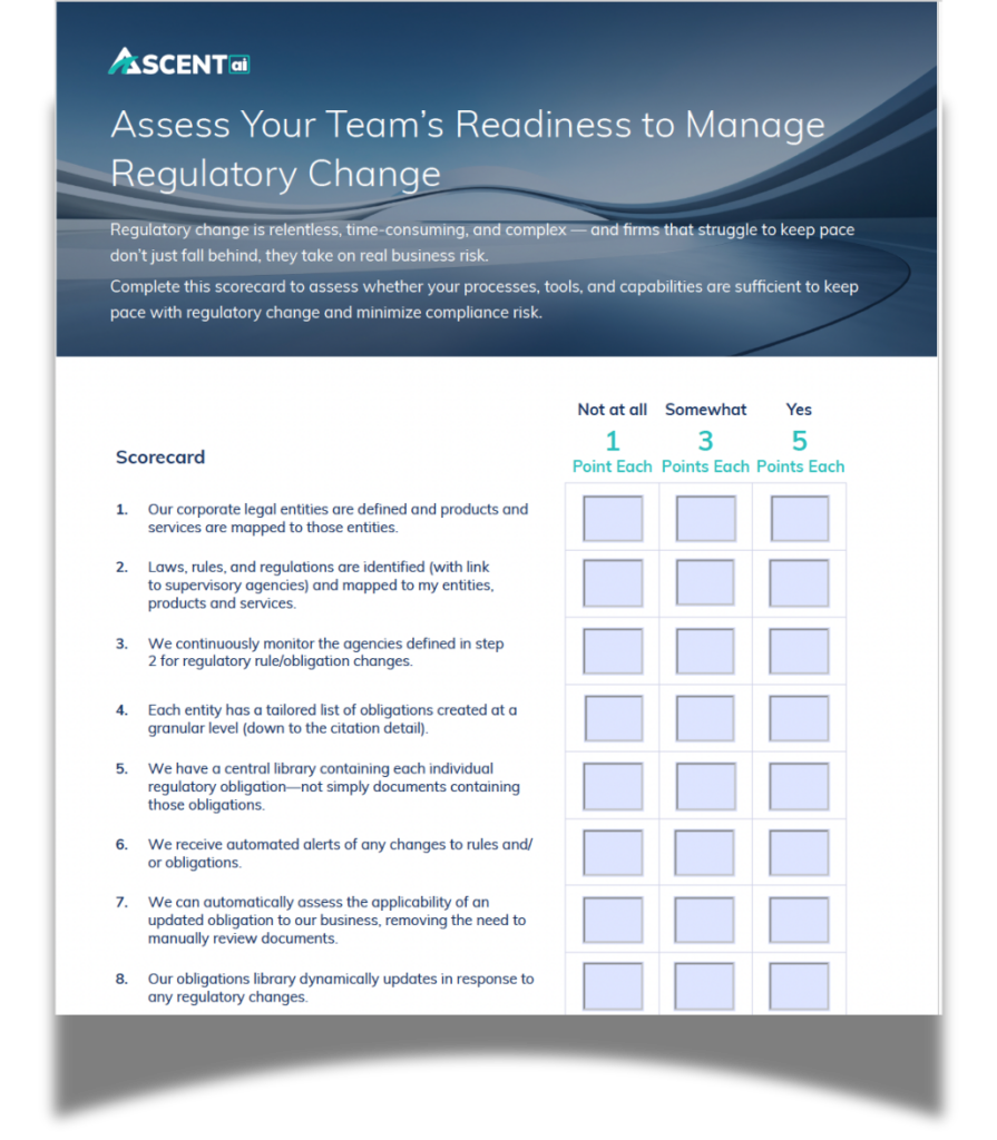 Check out our regulatory change management scorecard and see how you rate.